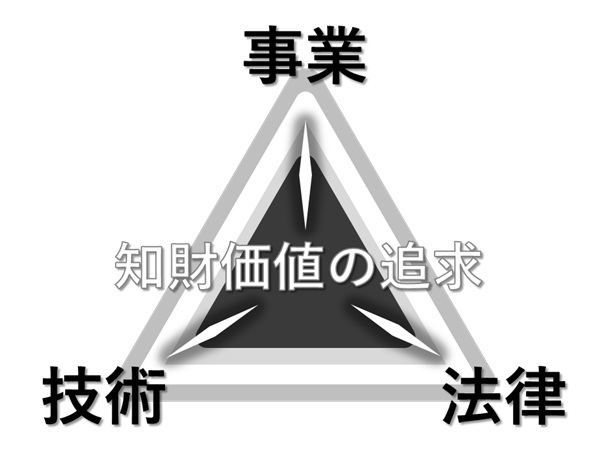 つまり、事業、技術、法律の3つの観点から追求していくべきである