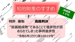 ”医薬組成物”であることで進歩性が認められてしまった事例2024/8/7判決言渡 #特許 #進歩性1.概要 本件は、特許第6353838号(発明の名称「IL-4Rアンタゴニストを投与することによるアトピー性皮膚炎を処置するための方法」。以下...
