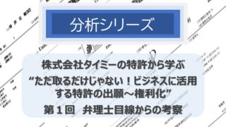 企業向けコンテンツ 分析シリーズ(知財活用戦略) 株式会社タイミーの特許から学ぶ “ただ取るだけじゃない!ビジネスに活用する特許の出願~権利化” (第1回) 今回は、タイミーの興味深い特許活用の試みについて紹介しながら、特許の活用の仕方について考察してみたいと思う。こういう使い方があるというのは、既に知っている人にはその可能性の再認識を与えてくれるであろうし、知らなかった人には特許の視野(可能性... 2026.02.05 企業向けコンテンツ全文無料記事知財分析シリーズ知財活用戦略分析