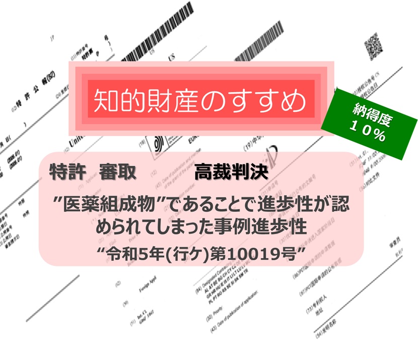 ”医薬組成物”であることで進歩性が認められてしまった事例
